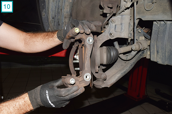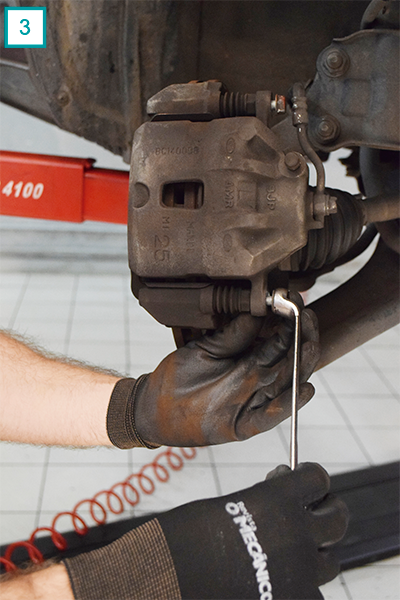 Passo 3: Utilizar chave estrela 14 mm, para soltar os parafusos de fixação da pinça