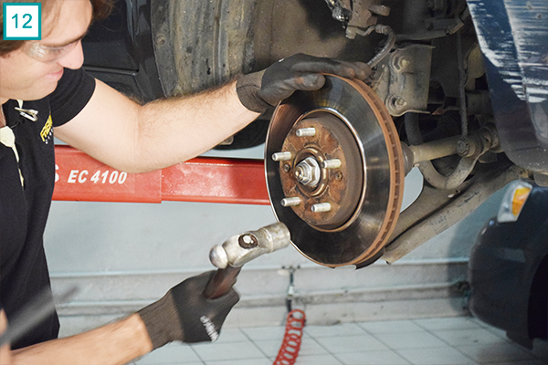 Passo 1: Utilize a pneumática para soltar os parafusos da roda