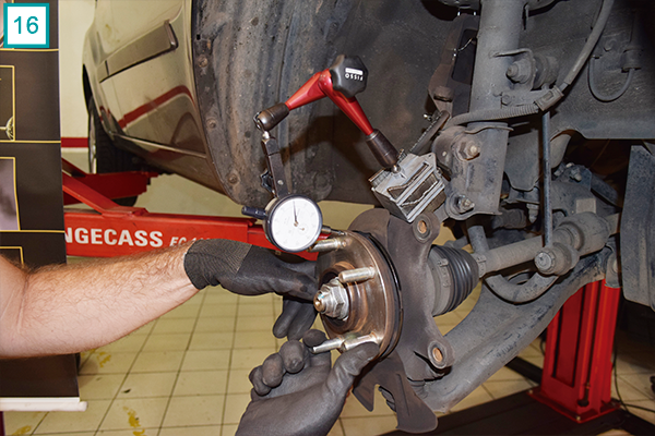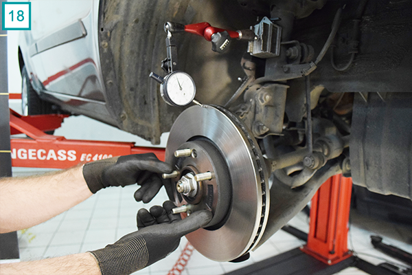 Passo 18: Verifique o empenamento do disco com o auxílio do relógio comparador