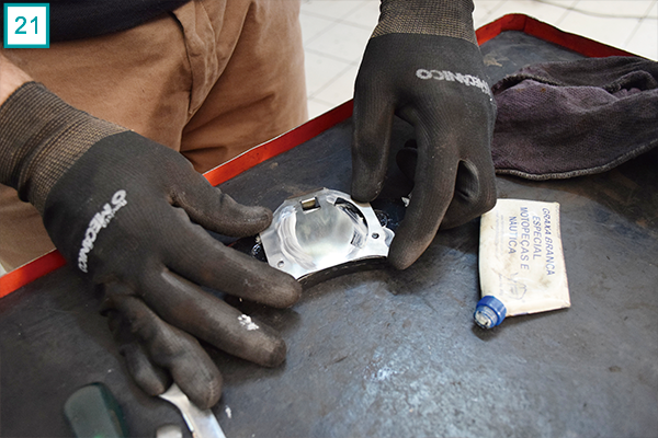 Passo 19: Use graxa a base de silício ou graxa náutica nos pinos deslizantes. Nunca utilize graxa derivado do petróleo.
