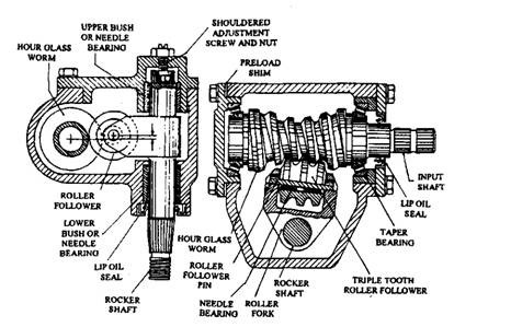 O sistema da caixa de direção, foi evoluindo nos automóveis ao longo das décadas. O que é comum de se observar, por exemplo no sistema da VW Kombi, Ford Maverick, dentre outros veículos é a folga excessiva, onde era utilizado rosca sem fim e setor. Neste sistema, há uma multiplicação mecânica de força muito grande, porém ele é proporcional ao ajuste de folga das engrenagens. O acionamento é feito por duas roscas, uma ao fim da coluna de direção e outra conectado ao braço Pitman.