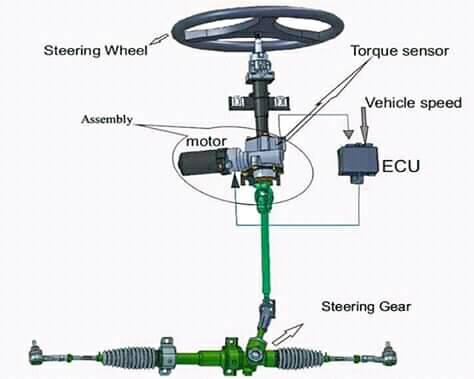 Neste sistema, o motor elétrico utiliza sensores para detectar movimento e velocidade do veículo que são enviados à ECU, dessa forma, entregando a progressividade da direção ao motorista.