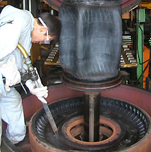 Os componentes são curados em uma prensa sob calor e pressão. O forro interno possui aditivos para impedir a passagem do ar em alta pressão, para montagem dos pneus sem câmara.