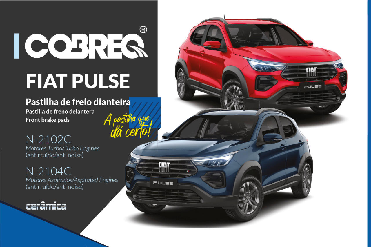 Para atender ao mercado de reposição, a Cobreq lança então dois códigos de pastilhas de freio (N-2102C e N-2104C) que atendem à demanda do Fiat Pulse.