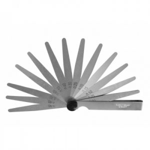 A folga é medida, segundo as especificações da montadora, com um calibre de lâminas como esse: