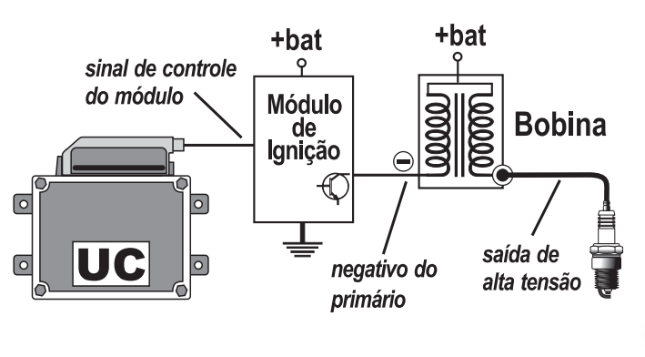 Nele está alojado o transistor de potência, através do qual é controlado o negativo da bobina. O módulo de ignição permite a implementação de outras funções auxiliares entre as que podemos mencionar:
