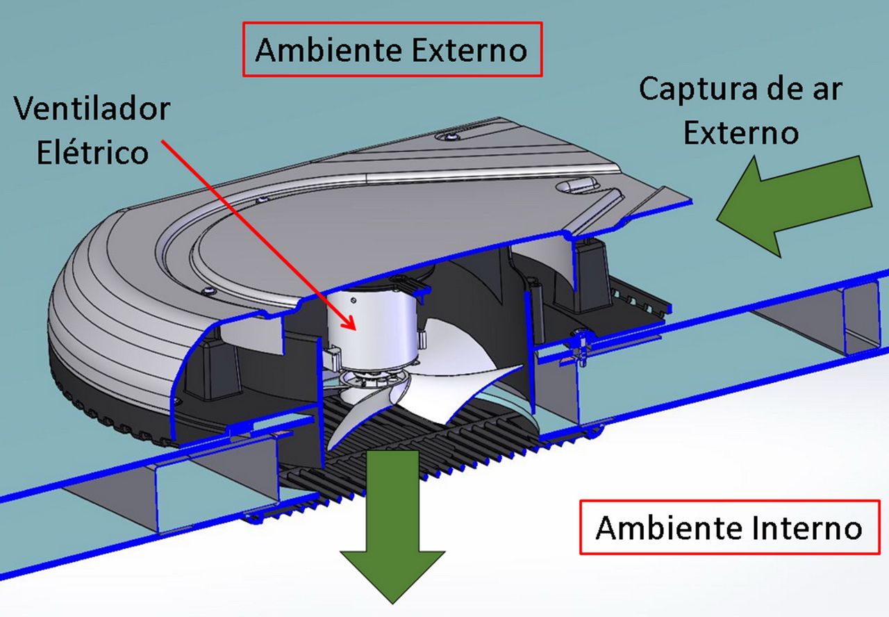 Sistema de admissão e exaustão de ar da cabine para renovação do ar