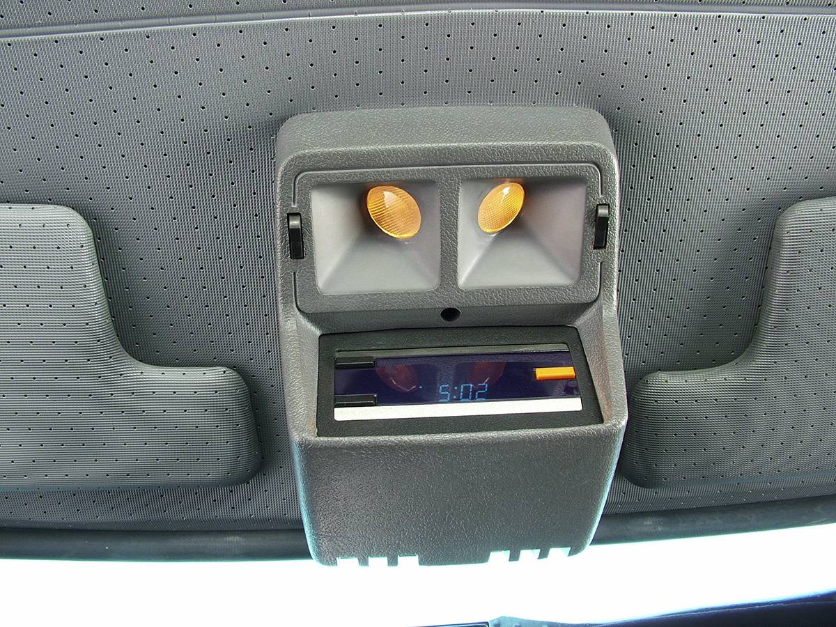Ele ficava em um console acima do retrovisor interno, na junção do para-brisa com o teto. Sua iluminação era em azul, também presente na luz de leitura (posteriormente foi mudado para amarela).