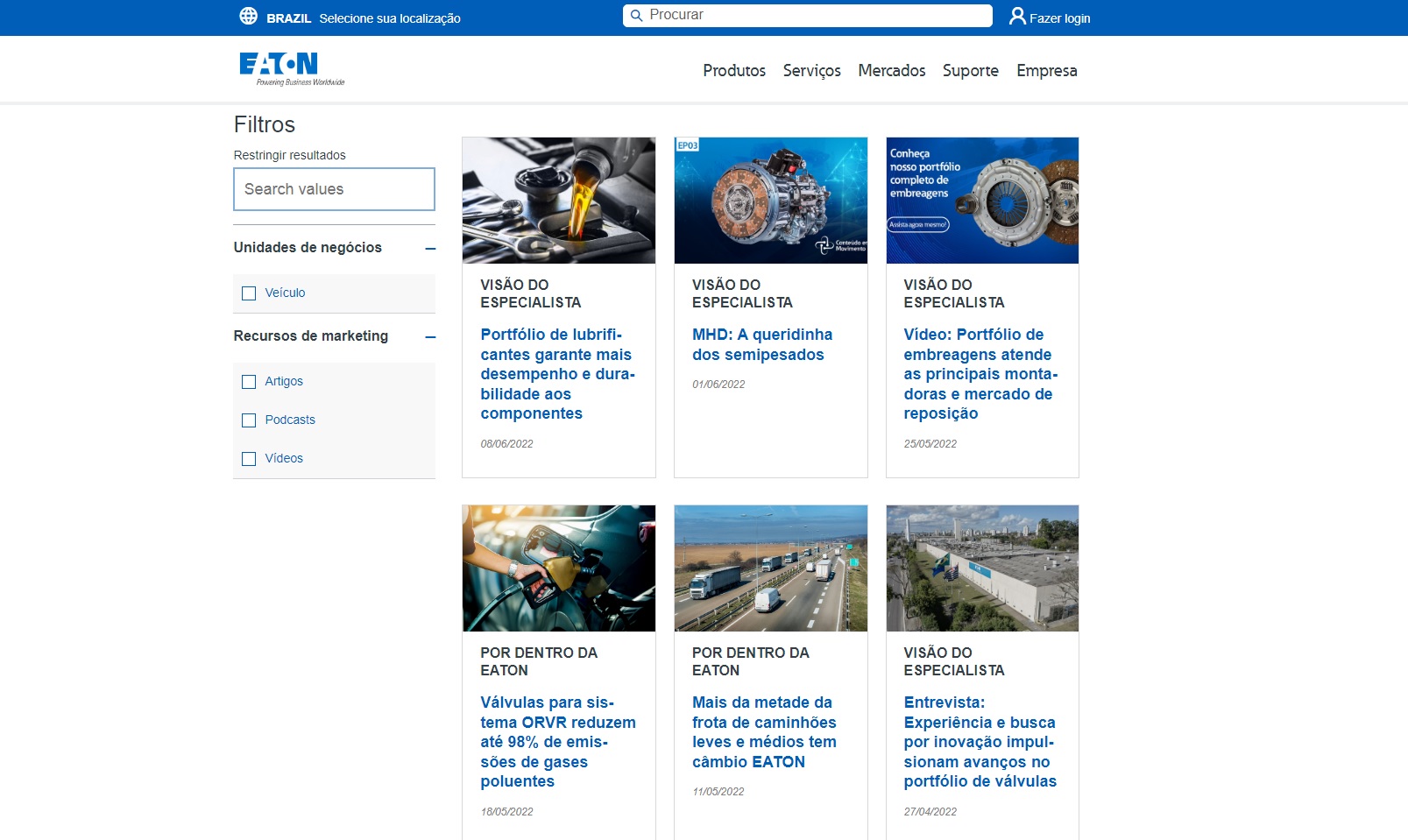 Recentemente, lançamos também o +EATON – canal de comunicação multimídia, que além de informações relevantes do negócio automotivo, tem conteúdo técnico acessível em formato de texto, vídeo e podcast.