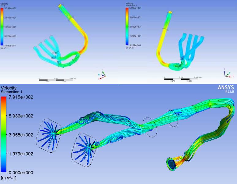 A otimização do fluxo de gases e o desenho do escape requer estudos físicos para chegar ao melhor desempenho de potência e torque. Fonte: BroadTech