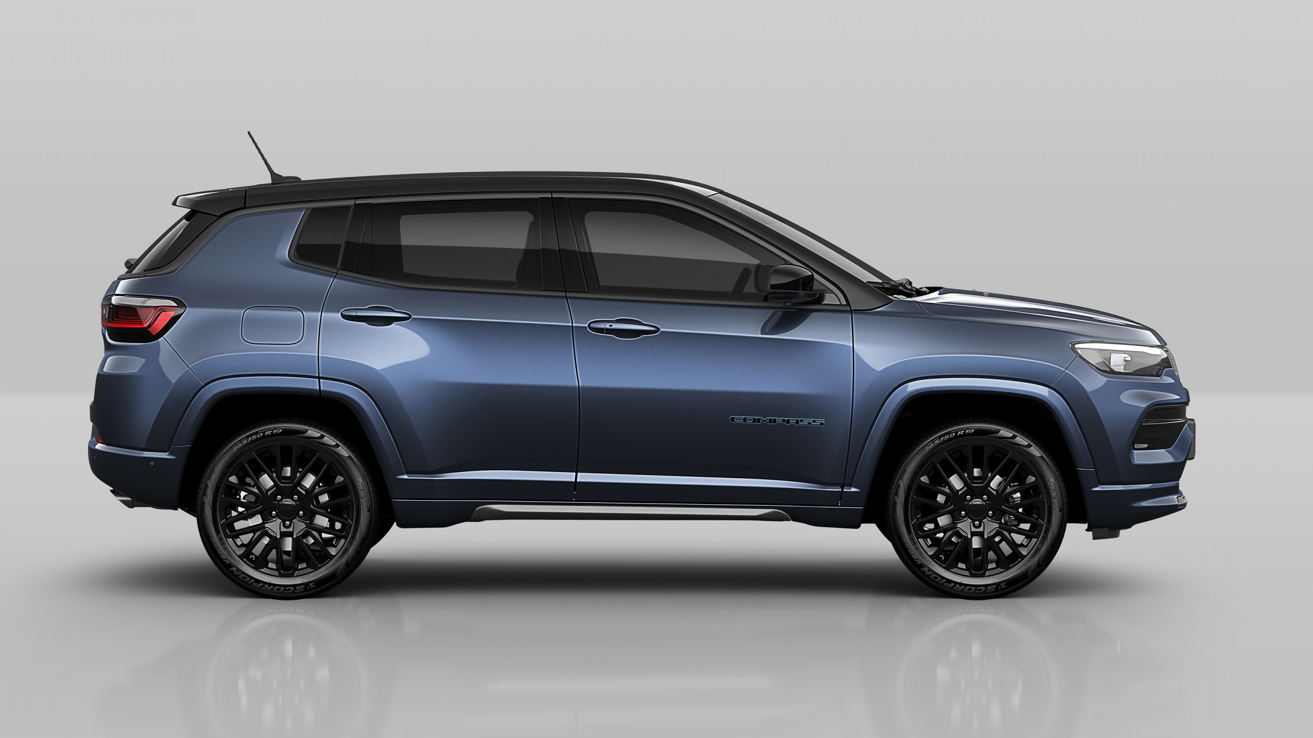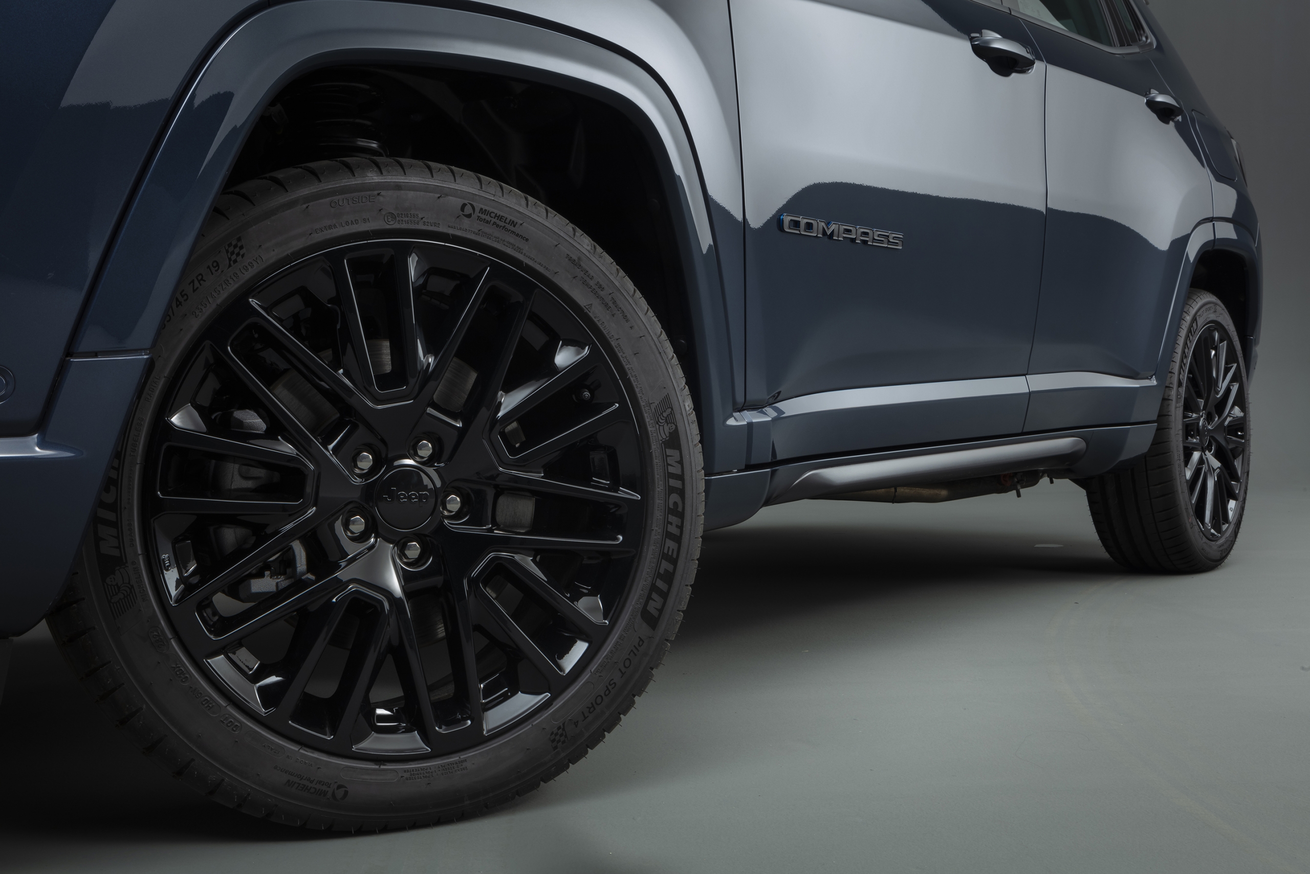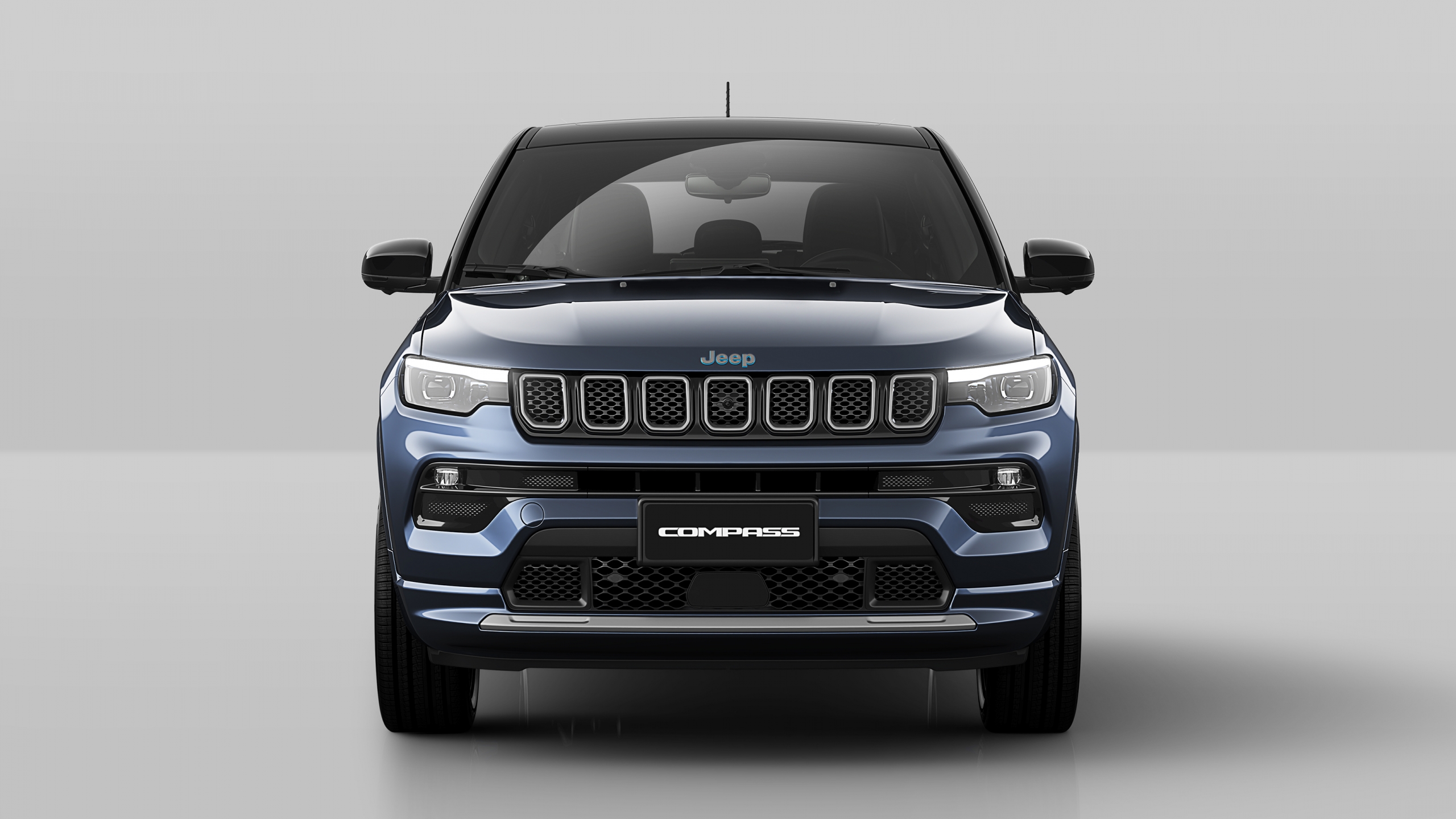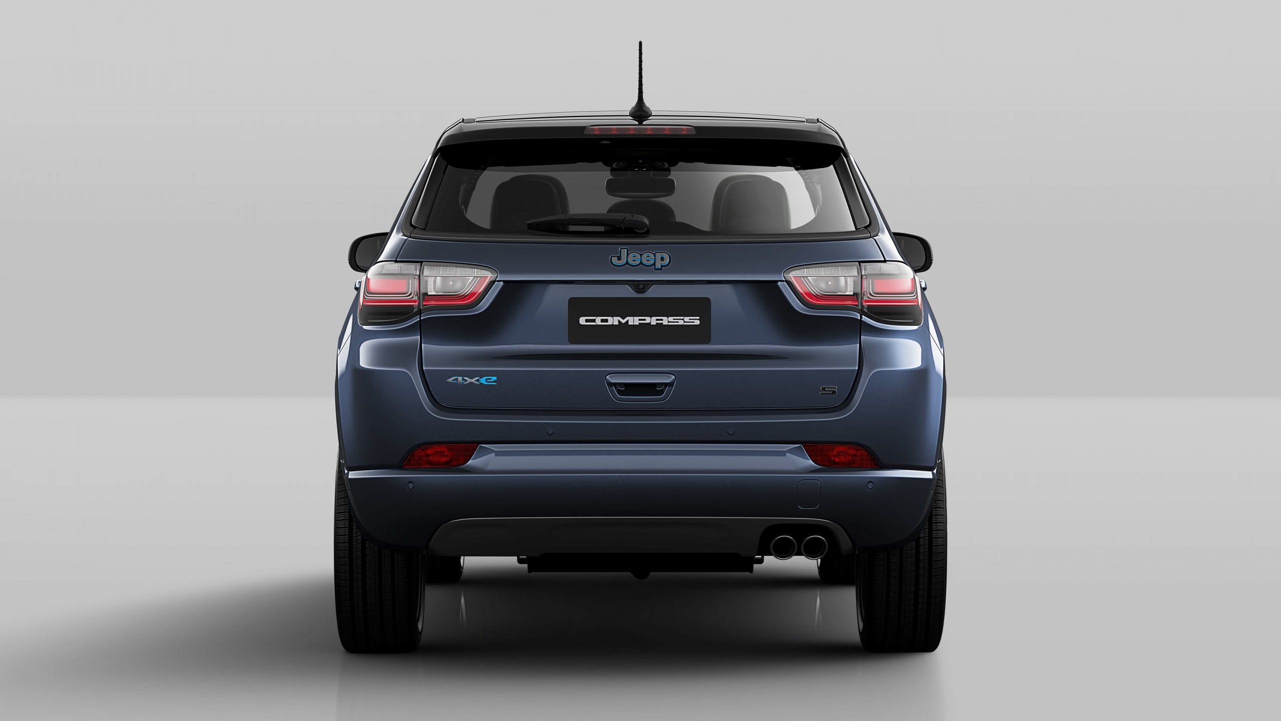 O novo Compass 4xe será oferecido em quatro cores exclusivas: Prata Glacier, Preto, Branco Alpine e Azul Shade. A cor azul também está presente em torno dos emblemas “Jeep” e “Compass” no capô, portas dianteiras e porta-malas. Na traseira também fica o logotipo “4xe”, que tem a última letra pintada também em azul para reforçar a presença da tecnologia híbrida plug-in no modelo. O Compass 4xe também oferece faróis com design exclusivo full LED.