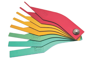 Produzida em chapas de aço, possui 8 níveis de inspeção graduados em milímetros e polegadas separados em três cores: verde (seguro), amarelo (atenção) e vermelho (perigoso).