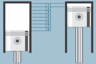 Representação do curso do pistão e volume deslocado