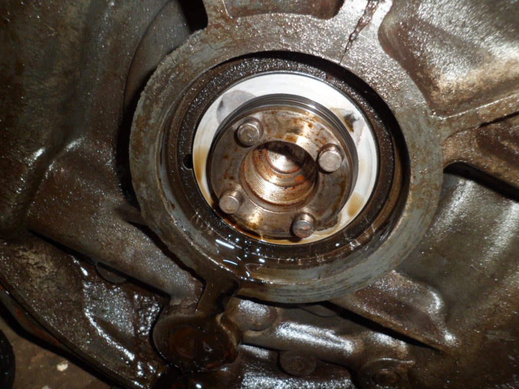 O vazamento de óleo através do retentor indica o mau estado de conservação e a necessidade de substituição.